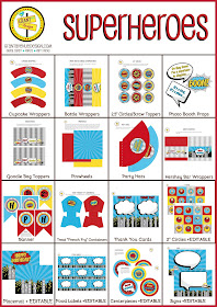 Superheroes Printable & Editable Party Kit this week! There are so many goodies in this kit. There are even 5 files that are EDITABLE so you can personalize your party. Don't worry if you have never used an Editable PDF file before. It's super simple and all you need is Adobe Acrobat Reader, which is FREE. All you have to do is type over all of my sample text with your wording!